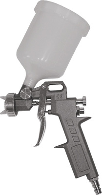 Краскопульт пневматический, 600 мл, 1,5 мм, расход воздуха 160 - 230 л/мин, рабочее давление 3,5 - 5 бар, ширина факела 110 - 240 мм. Материал: алюминий. Для пневмокомпрессора. Соединение быстросъемное. С пластиковым верхним бачком. Возможность регулировки: факела, расхода краски. Используется с: водоэмульсионными красками, синтетическими эмалями, полиуретановыми эмалями, эпоксидными эмалями, нитроэмалями.