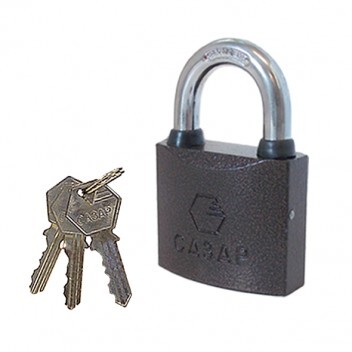 Материал - сталь с полимерным покрытием Ширина - 75мм Высота - 107мм Диаметр душки - 10мм Типа запирания - автоматический Ключи - 3 латунных (англ.тип)