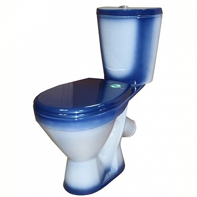 Унитаз-компакт Rosa КСФ Элегант синий горизонтальный выпуск с арматурой и сиденьем