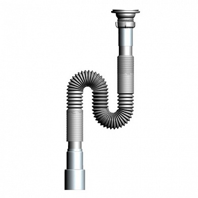 Гофрированный сифон блокирует неприятные запахи из канализации. В трубе всегда есть небольшое количество воды, которая и предотвращает появление неприятных запахов. Регулируемая длина гофры позволяет установить раковину на нужном расстоянии от канализации.