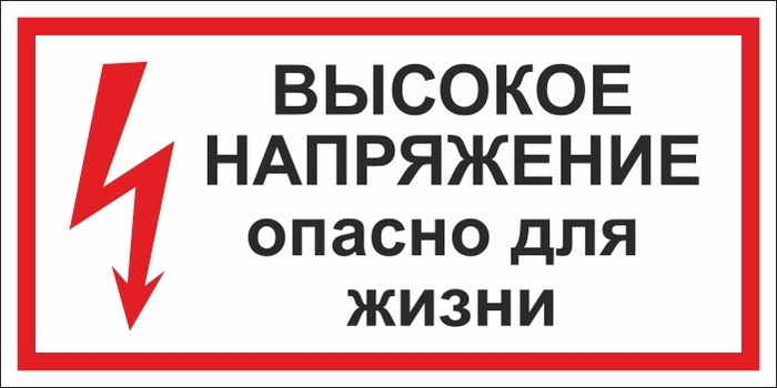 Знак Высокое напряжение Опасно для жизни 300*150 пленка