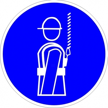 Предохранительные (страховочные) пояса имеют широкое применение, например при выполнении работ на высоте. Применяются данные приспособления в промышленном альпинизме, монтажных работах на высоте и др. Знаком работать в предохранительном (страховочном) поясе обеспечиваются рабочие места или участки, где работа без данного приспособления не безопасна и может повлечь травмы.