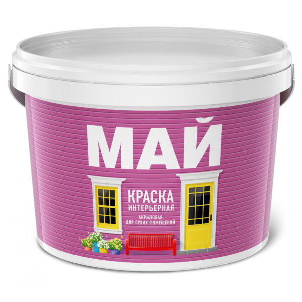 Акриловая интерьерная краска МАЙ для сухих помещений предназначена для окрашивания гипсокартонных,