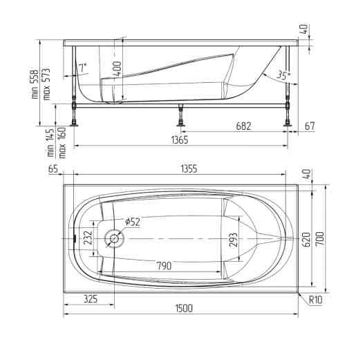 Ванна акриловая 1,5х0,7 Oviva Base
