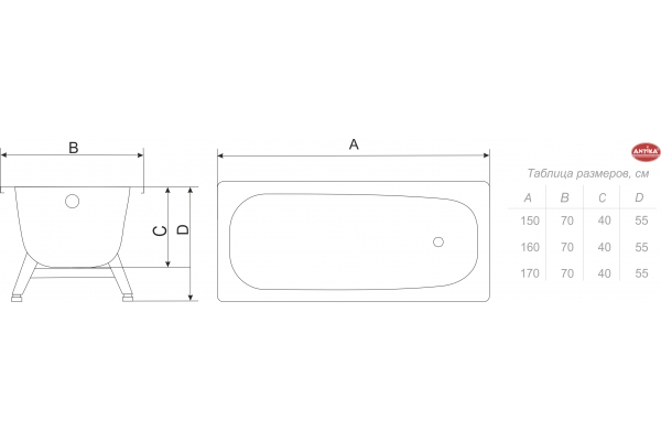Ванна стальная строительная 1,7х0,7м Antika
