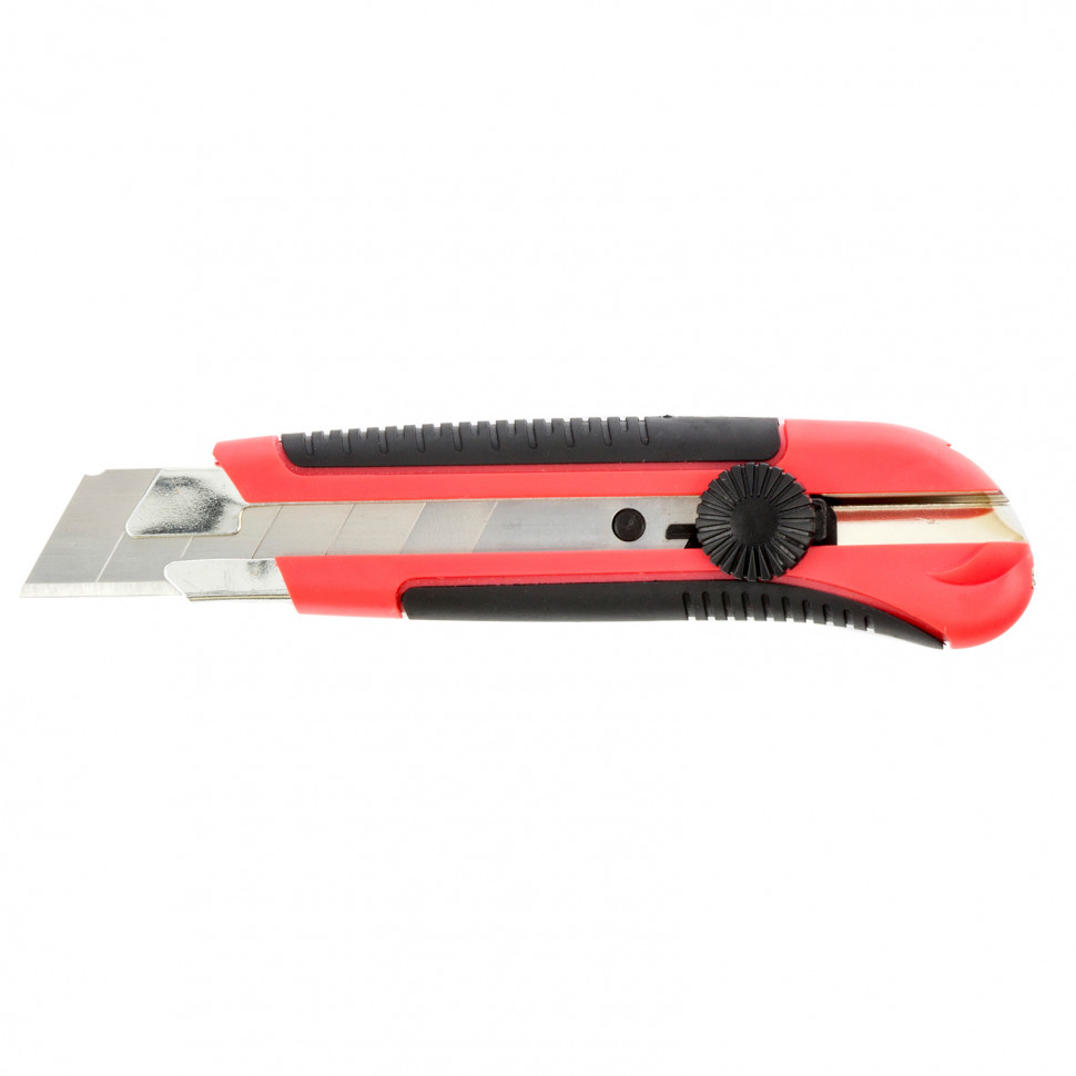 Нож Matrix в двухкомпонентном корпусе, с выдвижным лезвием шириной 25 мм, металлической направляющей, винтовым фиксатором и магнитом, применяется для разрезания картона, линолеума, ковролина, обоев, пленки, кожи и других мягких материалов. Лезвие выдвигается на необходимую длину и удерживается в этом положении при помощи винтового фиксатора.