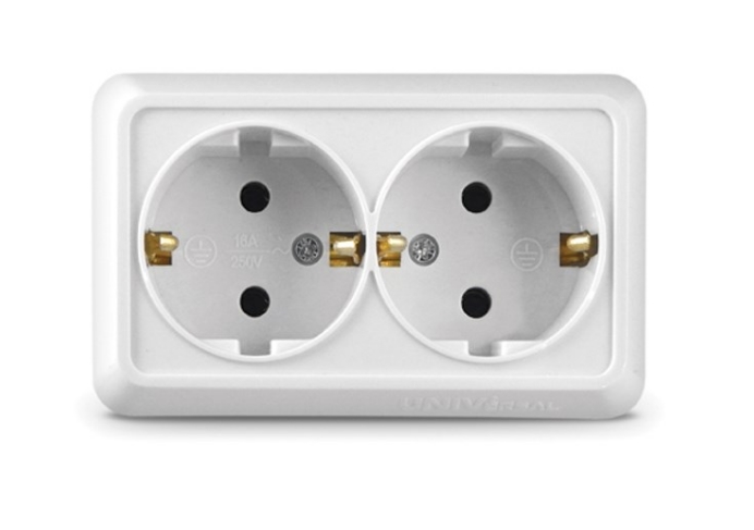Розетка 2-м ОП Олимп 16А белая с/з 00128