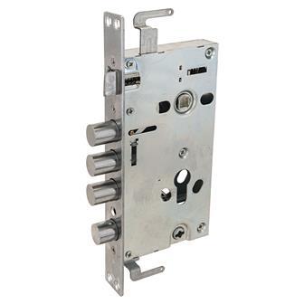 Замок врезной цилиндровый с защелкой и задвижкой, без механизма секрета. Предназначен для установки в китайские металлические двери, в качестве основного замка. Реверсивная защелка позволяет устанавливать замок на правые и левые двери. Три цилиндрических стальных ригеля. 3 точки запирания. Корпус замка - сталь, толщиной 0,9мм. Удаление ключевого отверстия 60мм. Межосевое расстояние 68мм. Расстояние от центра механизма секрета до задвижки 53мм. Цвет торцевой планки - хром, ширина 30мм.