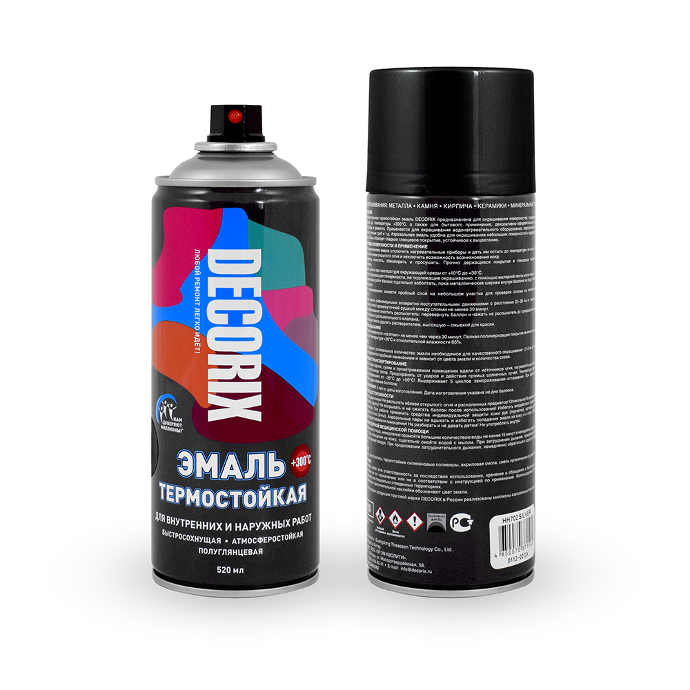 Высококачественная термостойкая эмаль DECORIX предназначена для окрашивания поверхностей, подверженных нагреванию до температуры +300°С, а также для бытового применения, декоративно-оформительских работ, строительства и ремонта.