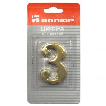 Цифра дверная "3" на клеевой основе золото Аллюр