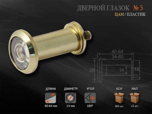 Глазок дверной №5 цам/пластик 14/180/35-60мм хром НОРА-М