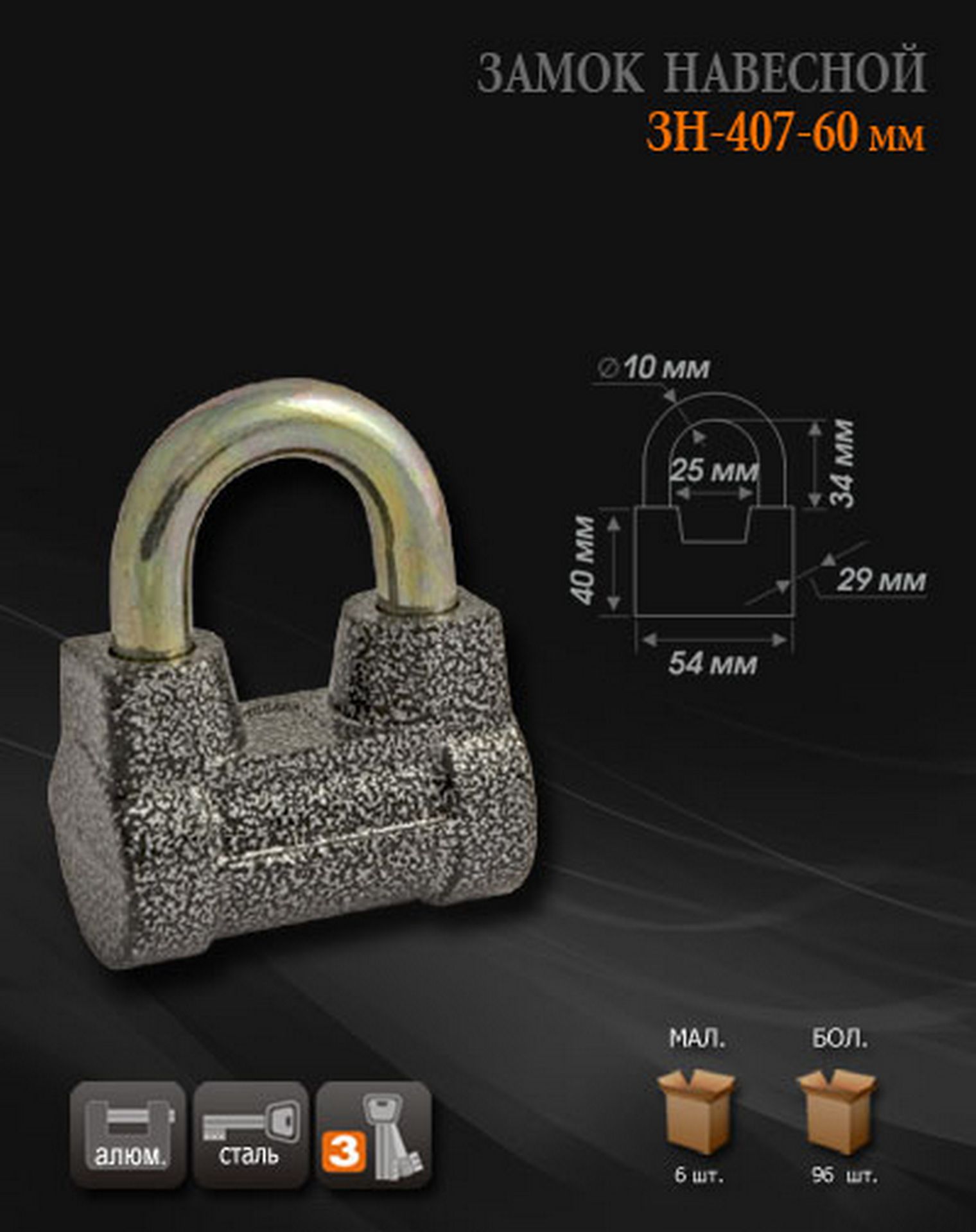 Замок навесной ЗН-407-60мм 3кл НОРА-М/6шт