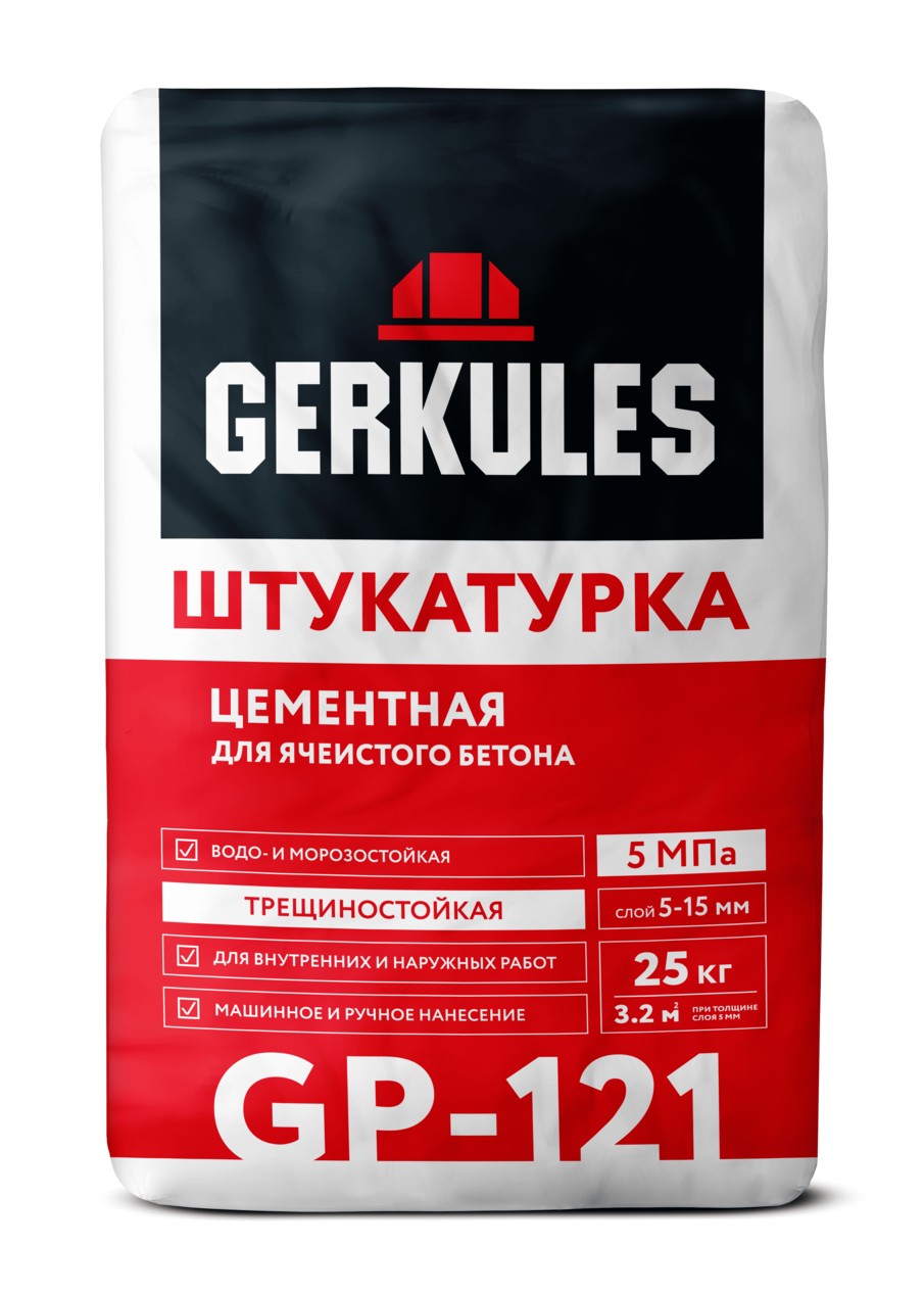 Штукатурка Цементная для газоблоков и ячеистого бетона GP-121 25кг Геркулес/56