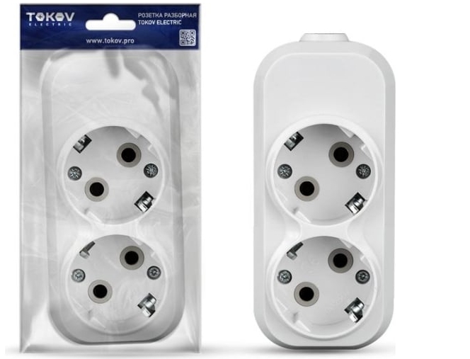 Колодка удлинителя 2-м 16А с заземлением АБС пластик белая TOKOV ELECTRIC