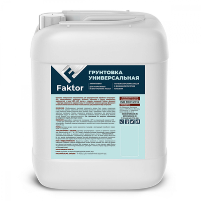 Универсальная акриловая грунтовка FAKTOR глубокого проникновения с добавкой против плесени поможет добиться наилучшего результата при покраске стен внутри и снаружи помещений. Она сокращает расход финишного материала, обеспечивает равномерность нанесения краски и значительно увеличивает срок службы покрытия. Преимущества Глубоко-проникающая; С добавкой против плесени; Для наружных и внутренних работ; Подходит для разбавления водо-дисперсионных лакокрасочных материалов. Расход при однослойном покрытии: 1 л на до 10 м² Гарантия: 24 месяца Состав: вода, акриловая дисперсия, наполнитель, модифицирующие добавки.