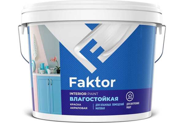 Краска для потолков FAKTOR на акриловой основе предназначена для окраски потолков внутри сухих помещений. Она отлично ложится на бетонные, кирпичные и оштукатуренные поверхности, а так же гипсокартонные, древесно-стружечные и древесно-волокнистые плиты. Краска легко наносится кистью, валиком или распылением. После высыхания образует ровную матовую поверхность чистого белого цвета. Преимущества Легко наносится на горизонтальные поверхнос; Образует матовое покрытие без бликов; Подходит для окраски спортивных, детских и лечебных учреждений. Расход при однослойном покрытии: 1 кг на до 7 м² ? Состав: вода, акриловая дисперсия, наполнитель, модифицирующие добавки. Разбавитель: вода Транспортировка и хранение: хранить и перевозить в герметично закрытой таре при температуре от 0 до +30 С. если на упаковке имеется дополнительная этикетка "МОРОЗОСТОЙКАЯ" 0 допускается транспортировка и хранение при температуре до -30 С не более одного месяца, или до пяти циклов замораживания-оттаивания.