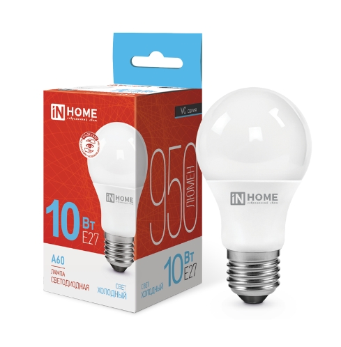 Лампа светодиодная LED-A60-VC 10Вт 230В Е27 6500К 950Лм IN HOME