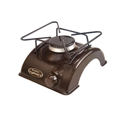 Компактная настольная туристическая газовая плита Gefest - Турист - это вариант настольной плиты, которую можно посоветовать как дачникам, так и туристам. Плита рассчитана на работу от бытовых газовых баллонов объёмом от 2л, отрегулирована на давление от 1760 Па до 3528 Па. Компактные размеры, малый вес и простота в монтаже и установке позволят получить настоящую кухню где угодно: в дачном домике, бытовке, на природе, а использование бытовых газовых баллонов даст возможность не задумываться о количестве оставшегося газа и сэкономить, ведь сжиженный газ на заправке обойдётся гораздо выгоднее, чем цанговые или резьбовые баллоны. Характеристики: Вес: 1000 гр. Материал: нержавеющая сталь Размеры: 19,5 см x 17 см x 9, 5 см. Тип плиты: настольная Из расчёта на N человек: 3-5 Мощность горелки плиты: 1,55 кВт. Диаметр горелки: 6,7 см. Расход топлива: 123 гр/ч. Максимальная нагрузка: до 10 кг. Комплект: плита, шланг газовый черный Ø 9 мм – 1 м., и 2 хомута.