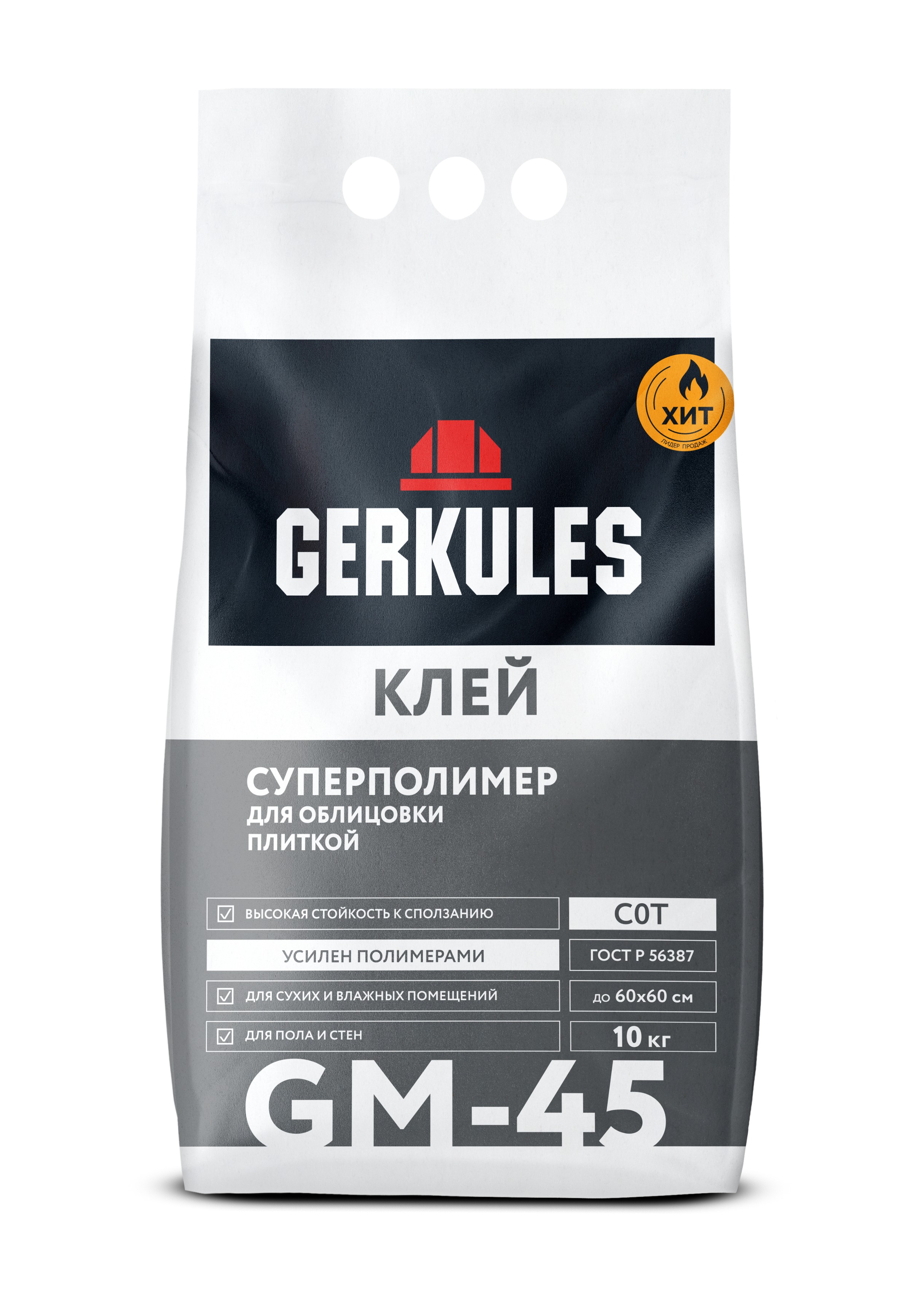 Клей для плитки Суперполимер GM-45 10кг Геркулес/72