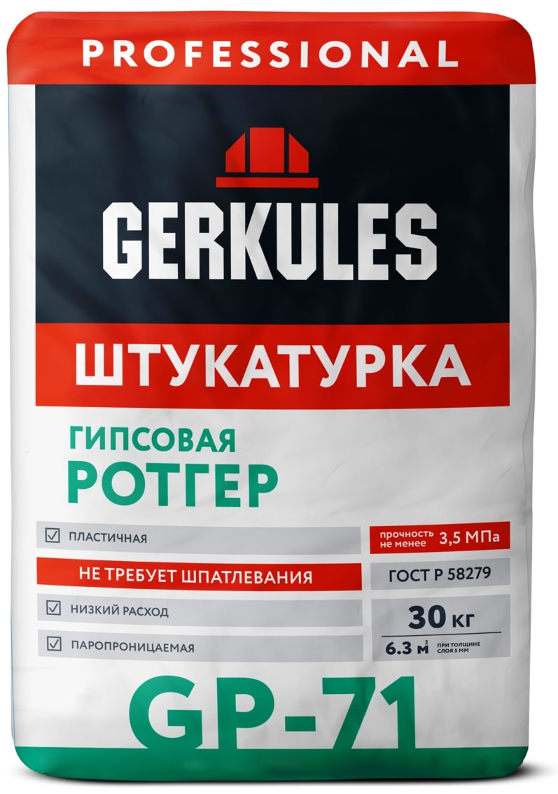 Штукатурка Гипсовая РОТГЕР PRO GP-71 30кг Геркулес/45