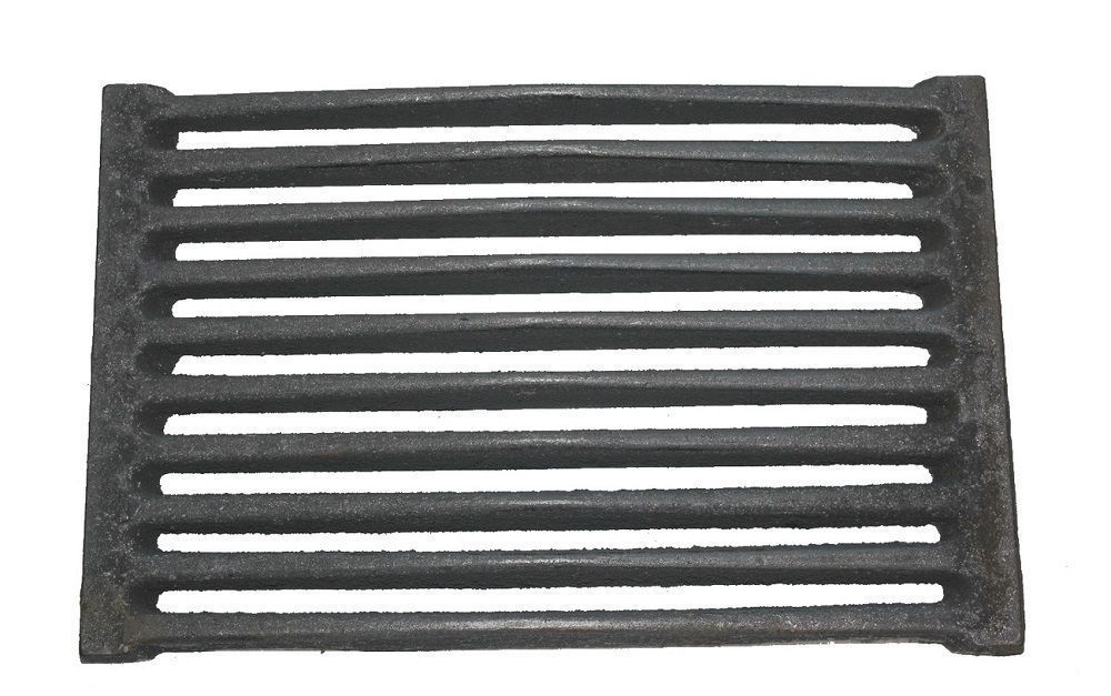 Данная решетка предназначена для дров. Решетки колосниковые выполняются цельными из чугуна. В решетках имеются пазы, через которые подается воздух к топливу и просыпается зола в поддувало. Укладываются решетки над поддувалом так, чтобы их пазы были направлены вдоль топливника (от дверки к задней стенке). Конструкция решетки обеспечивает равномерное горение по всей площади топливника.