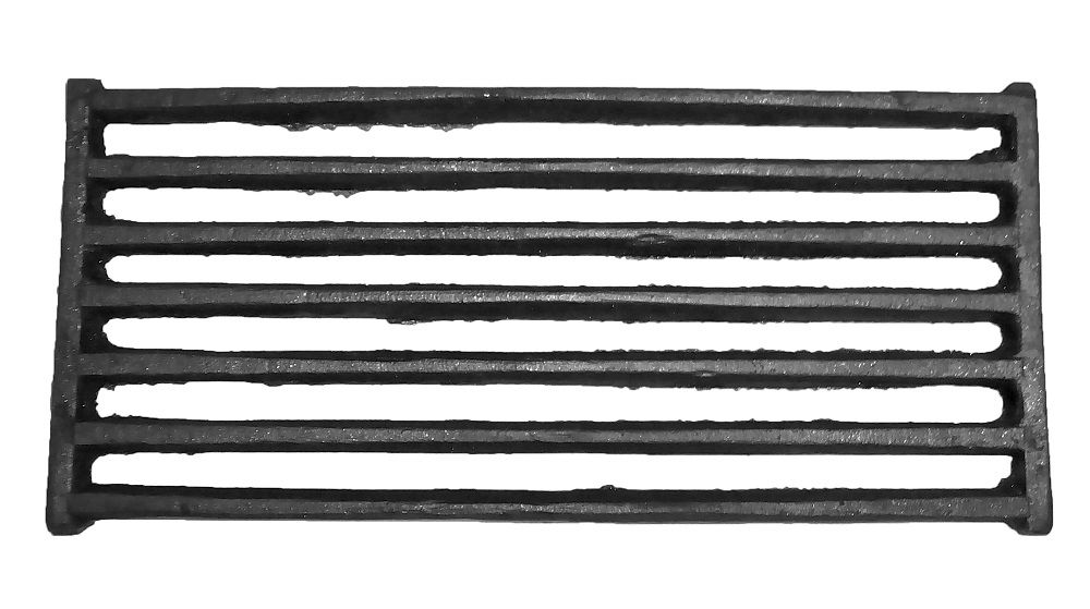 Данная решетка предназначена для дров. Решетки колосниковые выполняются цельными из чугуна. В решетках имеются пазы, через которые подается воздух к топливу и просыпается зола в поддувало. Укладываются решетки над поддувалом так, чтобы их пазы были направлены вдоль топливника (от дверки к задней стенке). Конструкция решетки обеспечивает равномерное горение по всей площади топливника.