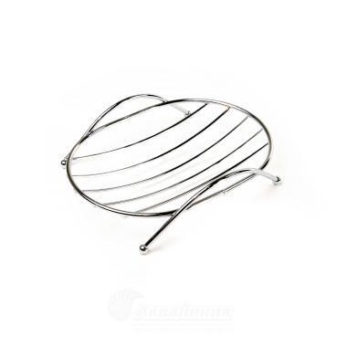 Мыльница-сетка настольная, овальной формы. Изготовлена из металла, покрытие хром. Сетчатый каркас не позволяет влаге скапливаться. Толщина прута 0,18 и 0,27 см. Оснащена металлическими ножками.