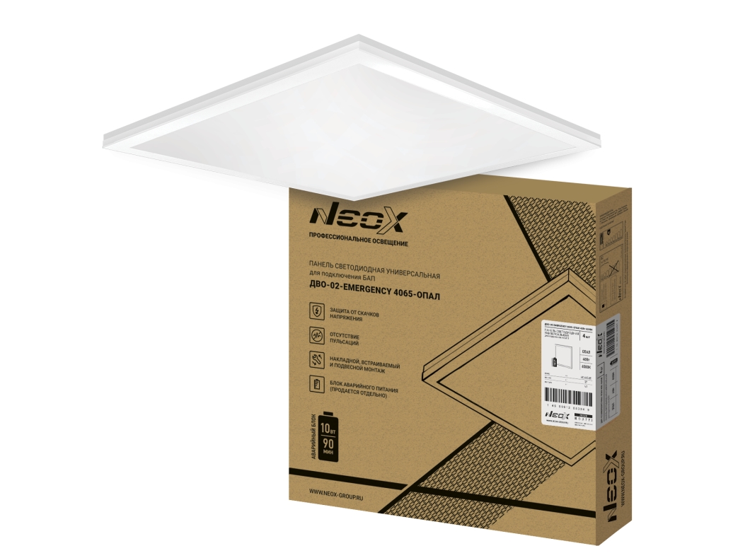 Панель светодиод ДВО-02-EMERGENCY 4065-ОПАЛ 40Вт 230В 6500К без БАП-10W90 595х595х22 NEOX