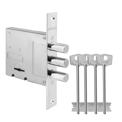 Замок врезной сувальдный Fuaro MDV812/S-60.00.3R14 с тремя ригелями предназначен для установки во входные и технические металлические двери. Стальной оцинкованный корпус. Универсальная установка, подходит для левых и правых дверей.