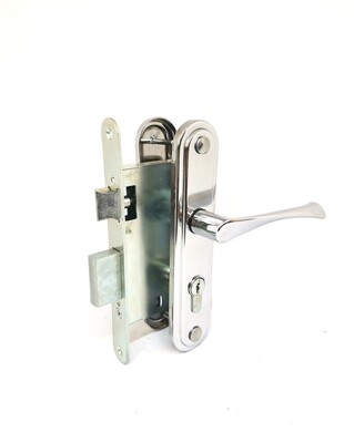 Замок врезной цилиндровый с защёлкой в комплекте с ручкой ЗВ7 хром 4кл Омега