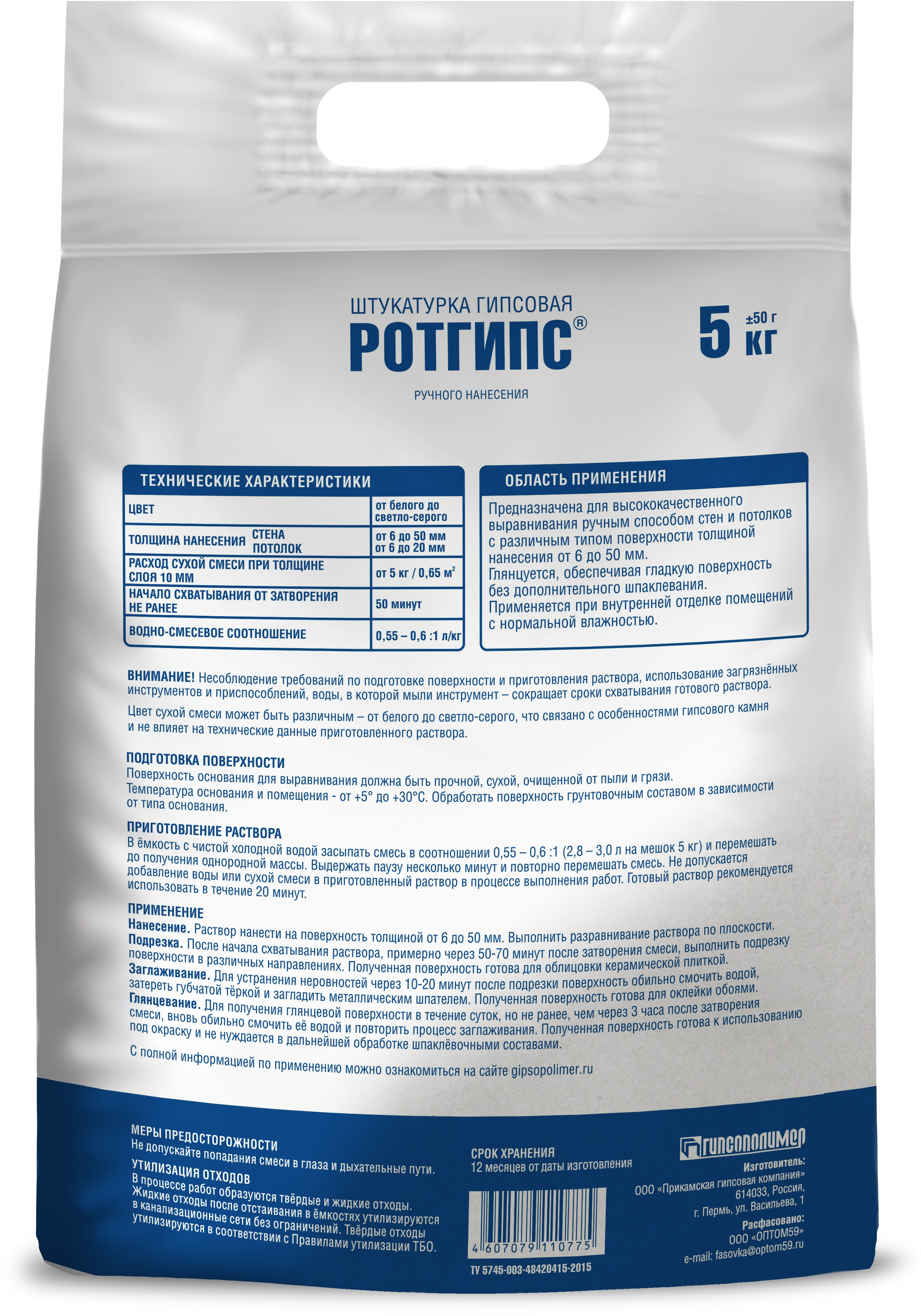 Штукатурка Ротгипс 5кг Гипсополимер