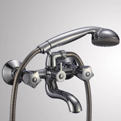 Смеситель для ванны с коротким изливом флажковый переключатель двуручный Е30