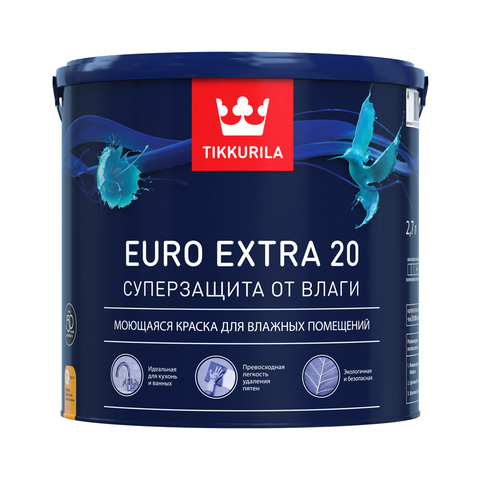 Краска интерьерная полуматовая влагостойкая Euro Extra 20 0,9л С Tikkurila