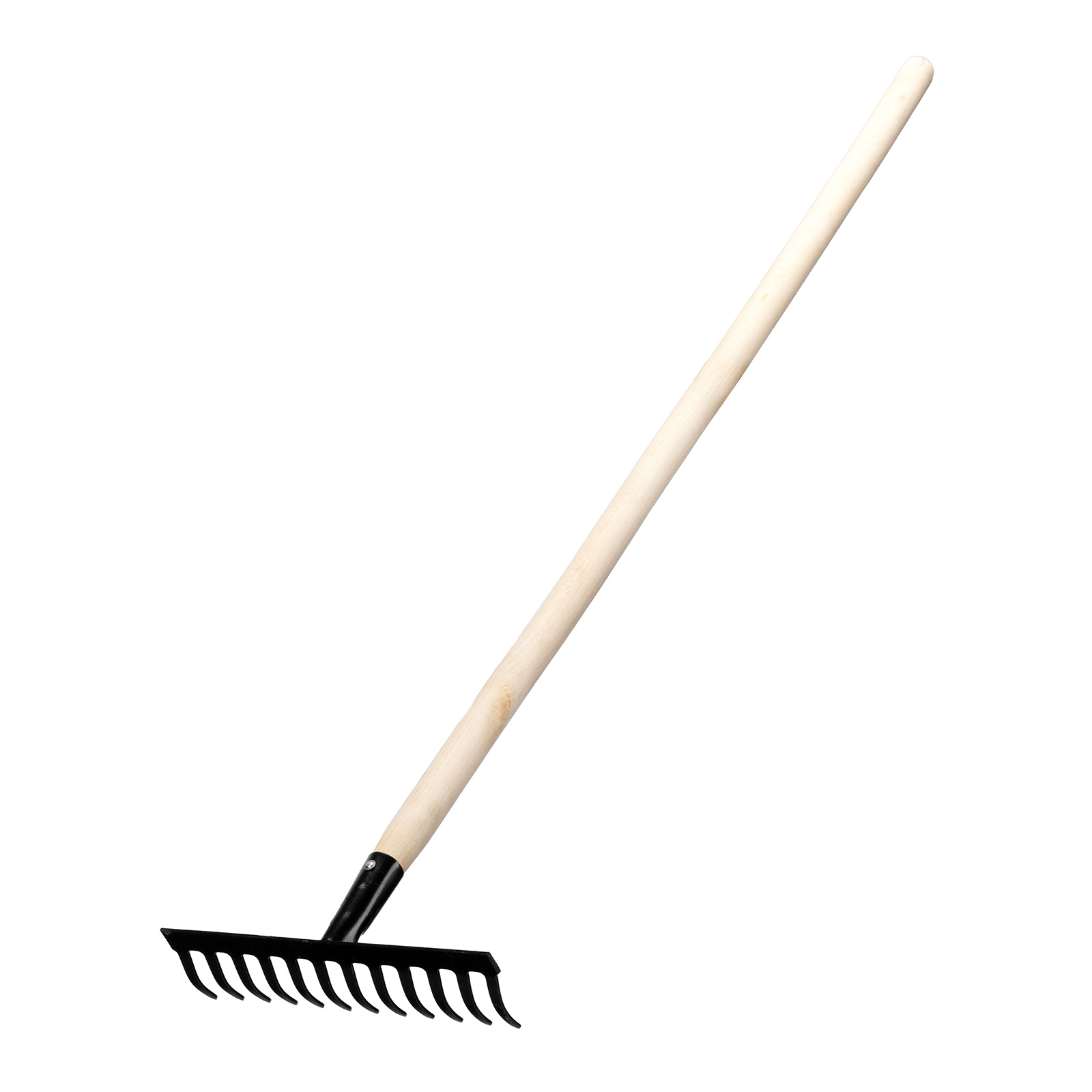 Стальные грабли с 12 прямыми зубьями, предназначены для садово-огородных работ. Они используются для выравнивания грядок и рыхления грунта. 12 заостренных на концах зубьев облегчают решение поставленных задач.