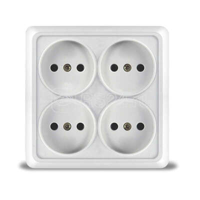 Розетка 4-м ОП без заземления квадрат белая Олимп 1164