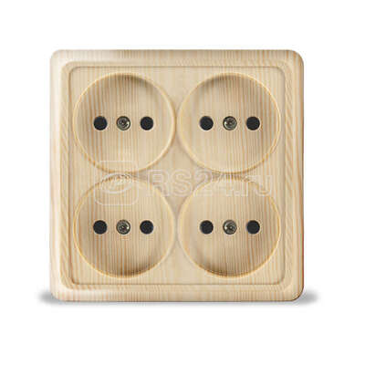 Розетка 4-м ОП без заземления квадрат сосна Олимп 1176