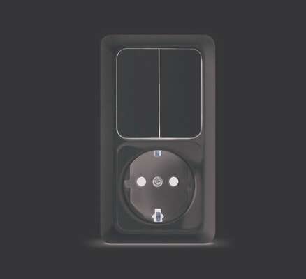 Блок ОП 2-кл вык+роз с заземлением вертик бел c подсвет Олимп 00040