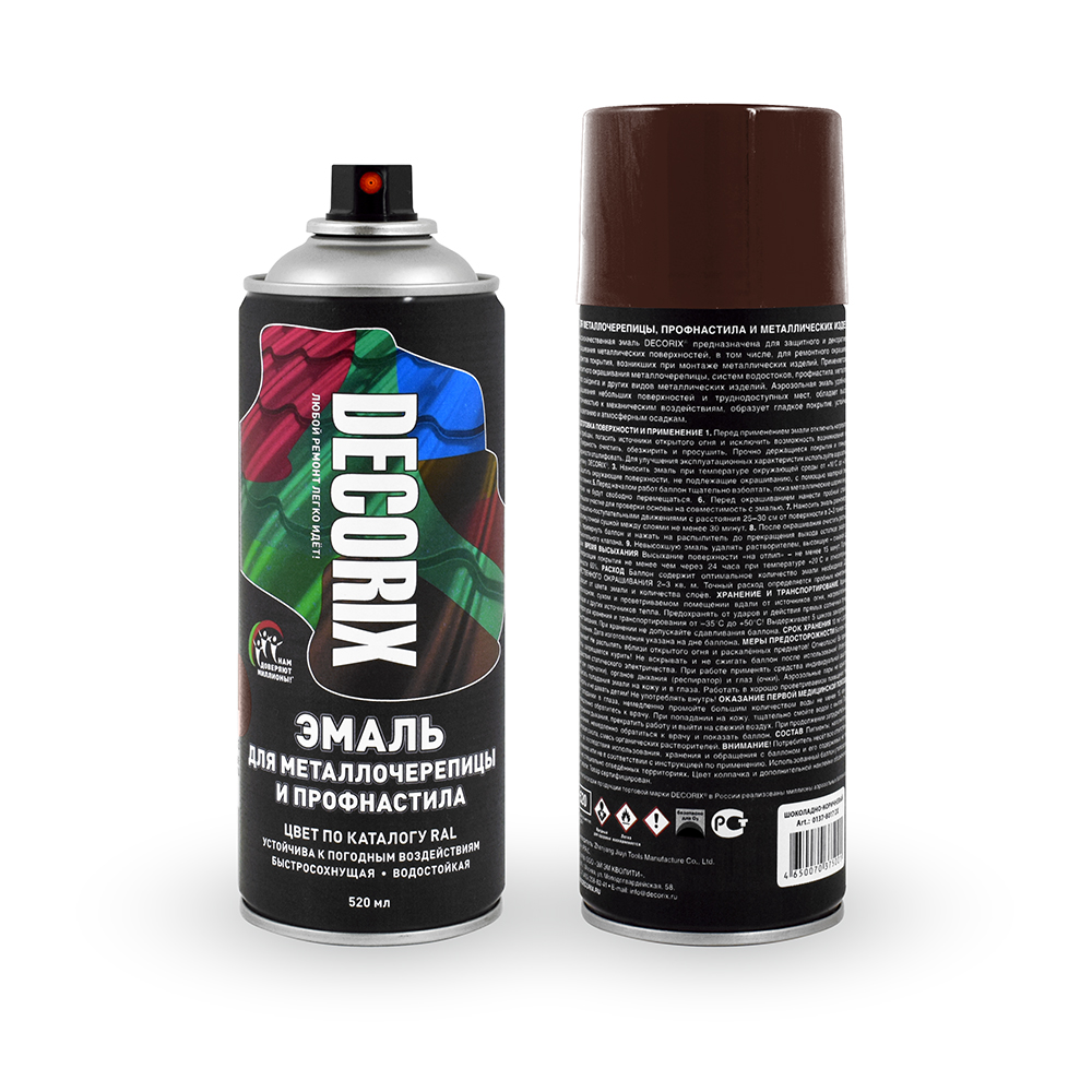 Эмаль аэрозольная для металлочерепицы 520мл шоколадно-коричневый RAL 8017 Decorix/12