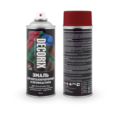 Высококачественная алкидная эмаль DECORIX® предназначена для защитного и декоративного окрашивания металлических поверхностей, в том числе, для ремонтного окрашивания дефектов покрытия, возникших при монтаже металлических изделий. Применяется для ремонтного окрашивания металлочерепицы, систем водостоков, профнастила, металлического сайдинга и других видов металлических изделий. Аэрозольная эмаль удобна для окрашивания небольших поверхностей и труднодоступных мест. Эмаль обладает высокой устойчивостью к механическим воздействиям, образует гладкое глянцевое покрытие, устойчивое к выцветанию и атмосферным осадкам.
